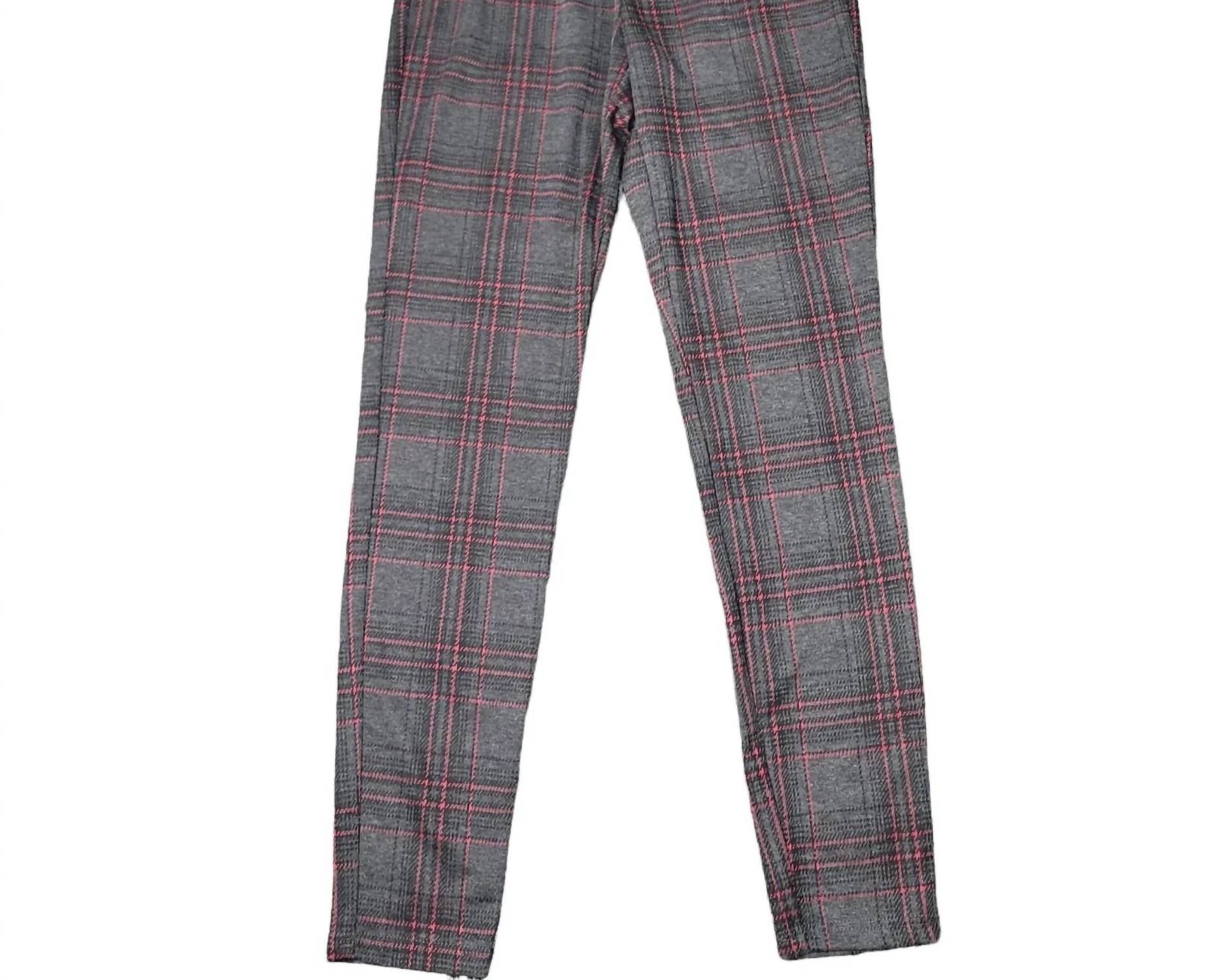 Introducing the Pull-on Ponte Leggings by Hippie Rose, crafted for a flattering, comfortable fit in a chic grey plaid pattern. These women's leggings feature a mid-rise and skinny leg style with a convenient pull-on closure. Made in China from a soft blend of 92% Polyester and 8% Spandex, they boast a rise of 9.5 inches and an inseam of 30.5 inches. Perfect for fall, these leggings are designed with a slim fit and are easy to care for with hand washing instructions.
