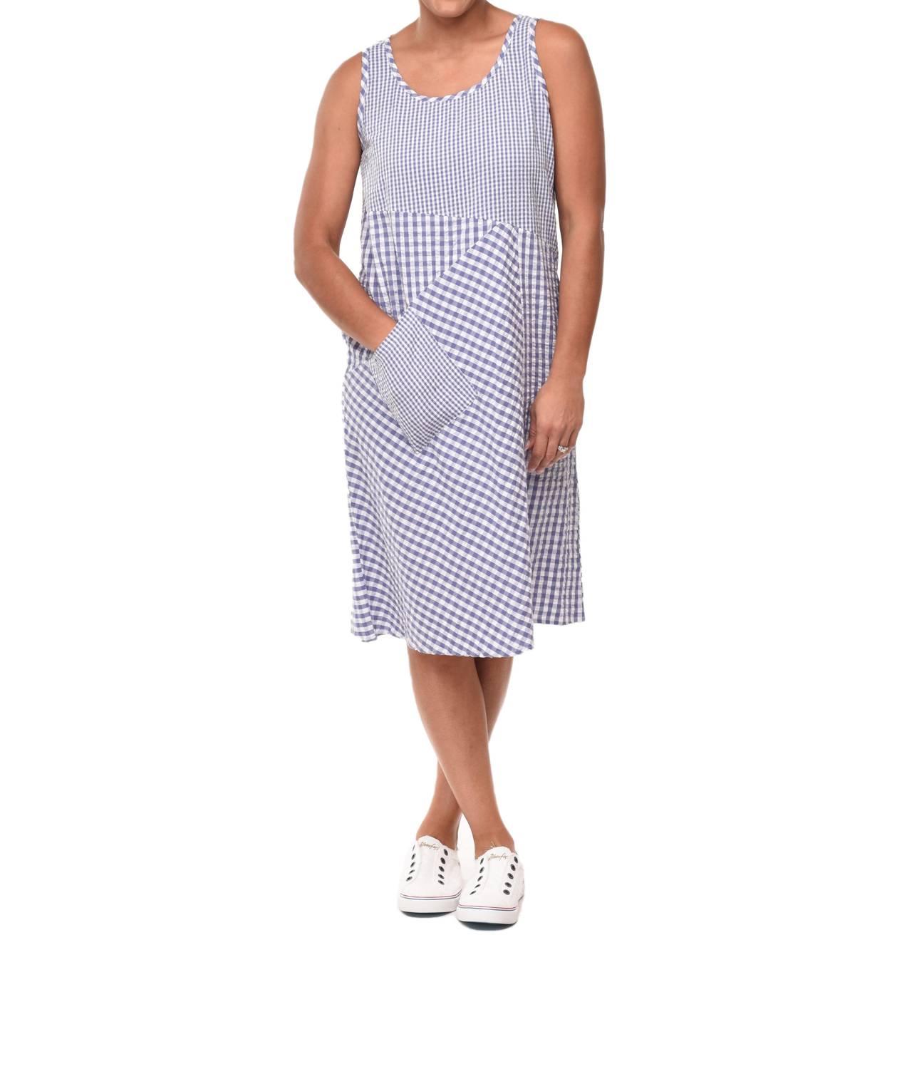 Apresentando o Vestido Dawson da Tulip Clothing, uma escolha charmosa em xadrez Peri, perfeito para uma ocasião de primavera. Este vestido sem mangas, na altura do joelho, com corte em A, apresenta um decote redondo com detalhes contrastantes, estampa xadrez e elementos práticos como um patch e bolsos laterais. Confeccionado em 100% algodão, garante respirabilidade e conforto para celebrações em climas quentes. Fechamento: Pull-on. As medidas do peito variam de 38" a 48", e os comprimentos de 41" a 43,5". Peito PP 38", P 40", M 42", G 44", GG 46", 2GG 48". Comprimento PP 41", P 41,5", M 42", G 42,5", GG 43", 2GG 43,5".