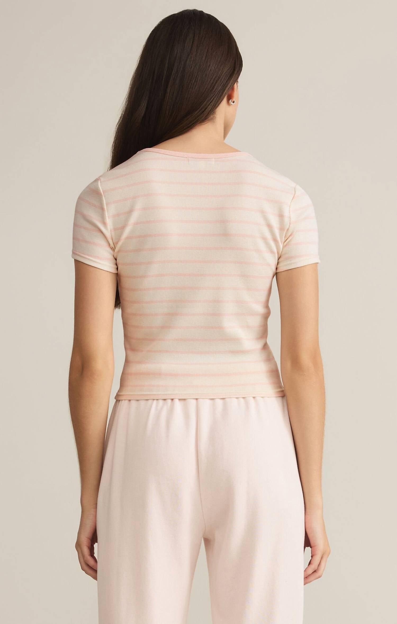 Esta camiseta clássica de manga curta será sua peça essencial nesta temporada e nas próximas. Descubra a camiseta listrada Saxton em Supernova da Z Supply, um item essencial e chique para qualquer guarda-roupa. Esta camiseta de manga curta apresenta um elegante decote redondo com um design contrastante, enquanto seu corpo ajustado e comprimento levemente cropped adicionam um toque moderno. Confeccionada em uma mistura premium de penas caneladas com 95% algodão e 5% elastano, esta blusa oferece um toque confortável e leve. Feita com cuidado em uma fábrica importada, é fácil de cuidar, seguindo as instruções de lavagem à máquina com água fria e secagem pendurada. Ideal para looks de volta às aulas ou para adicionar um toque Y2K aos seus passeios de primavera.