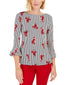Blusa feminina Charter Club cinza estampada com mangas franzidas, tamanho XX-G