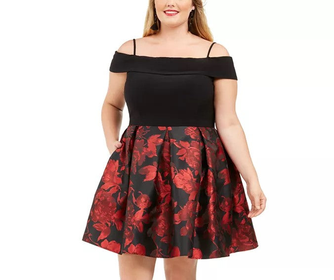 Vestido plus size ombro a ombro feminino da Morgan & Company, preto, tamanho 22