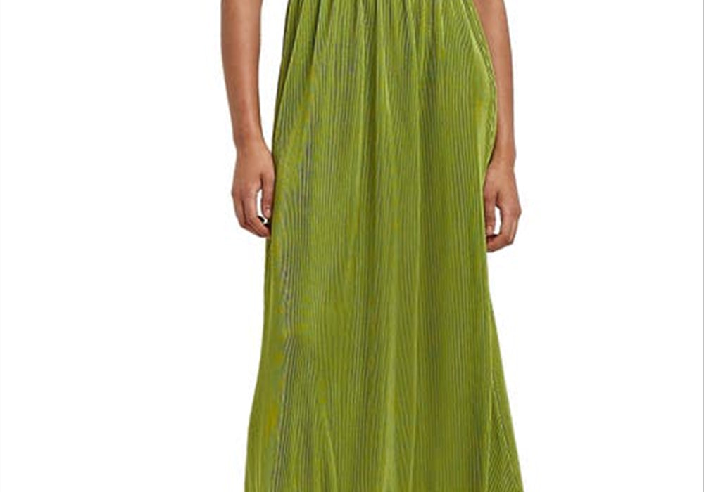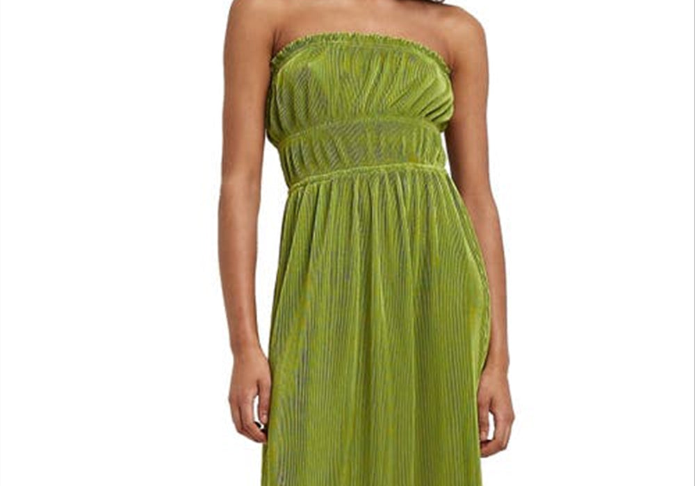 Design sem alças | Cor verde refrescante | Comprimento médio | Detalhes plissados ​​| Tamanho 4 | Vendido na Nordstrom | Desenhado por River Island