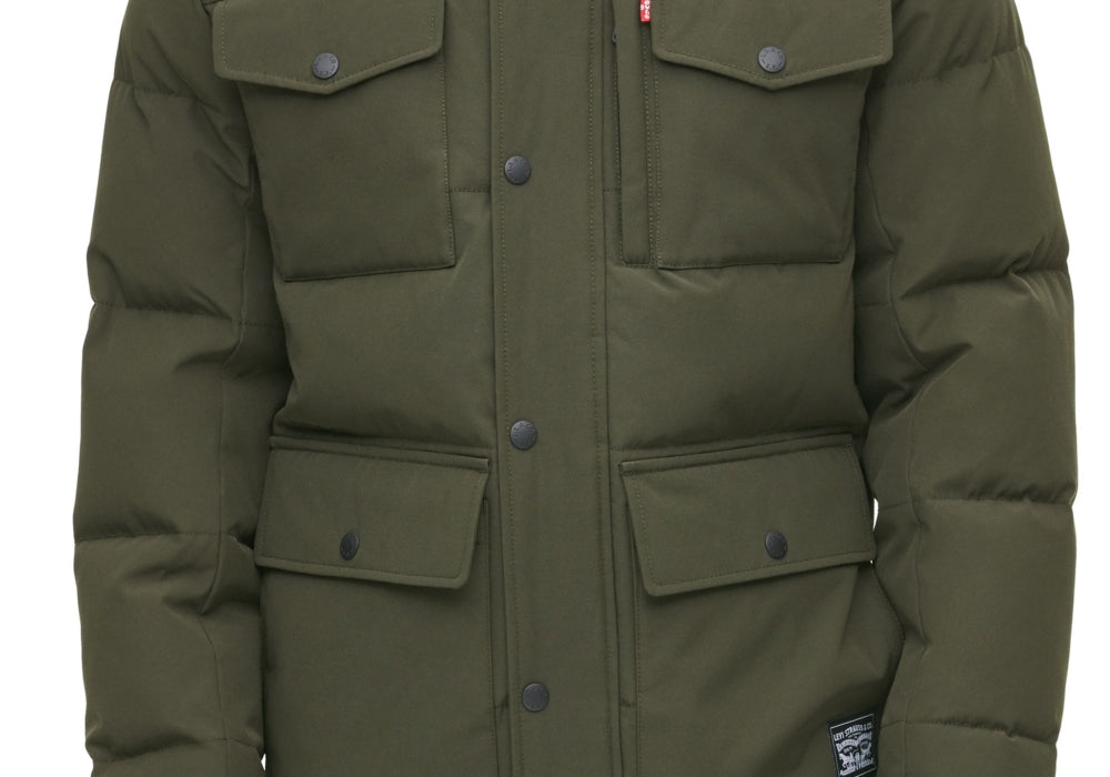 Design acolchoado | Quatro bolsos | Moletom com capuz | Material durável | Isolamento térmico | Ajuste confortável | Estilo versátil | Resistente às intempéries | Fácil manutenção | Zíperes seguros | Aparência elegante | Ajuste confortável.