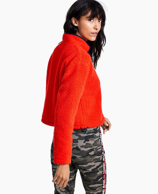 Tommy Jeans Feminino Fleece Comfy Top de Gola Alta Vermelho Tamanho X-S