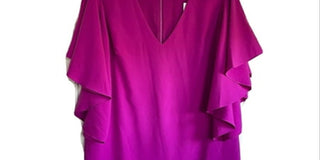 Vestido feminino Ralph Lauren com zíper, forro, manga sino, decote em V, comprimento até o joelho, roxo, tamanho 6