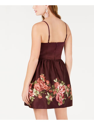Teeze Me Feminino Borgonha Zíper Gravata Floral Alcinhas Espaguete Decote Coração Mini Cocktail Fit + Vestido Flare Júnior 3