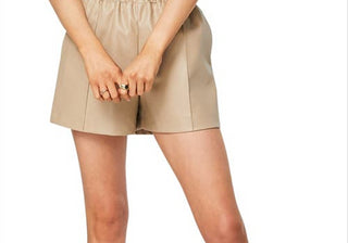 Topshop Shorts de corrida femininos em couro sintético Stone, tamanho 6 EUA