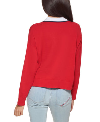Suéter Tommy Hilfiger Feminino Johnny Collar Vermelho Tamanho Grande