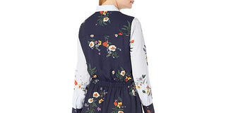 Vestido-camisa feminino Vince Camuto manga comprida bainha assimétrica azul tamanho X-S