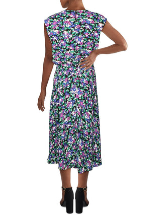 Vestido feminino Ralph Lauren com estampa floral, sem mangas, decote joia, abaixo do joelho, preto, tamanho 14