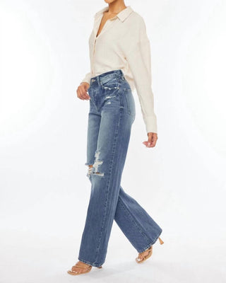 Kancan - Calça jeans larga desgastada dos anos 90 com cintura ultra alta