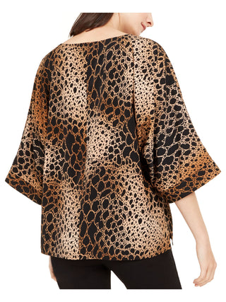 Blusa feminina Alfani com estampa animal e manga dolman, gola redonda, marrom, tamanho pequeno