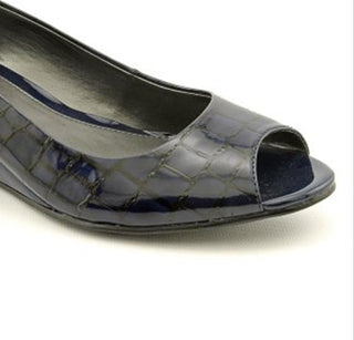 Alfani Cammi Peep Toe Wedges Heels Shoes Feminino Azul Tamanho 6.5