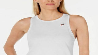 Camiseta regata Nike Sportswear feminina de algodão com costas nadador, branca, tamanho M