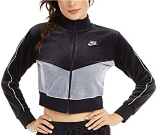 Jaqueta Nike Sportswear Velour Colorblocked Feminina, Cinza Escuro, Tamanho Pequeno