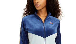 Jaqueta Nike Sportswear Velour Colorblocked Feminina Azul Tamanho Médio