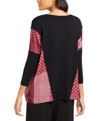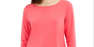 Blusa feminina Alfani coral com manga 3/4 e decote em joia, rosa, tamanho extragrande