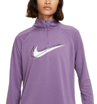 Camiseta Nike Swoosh Run Dri Fit Half Zip Feminina Roxa Tamanho XS