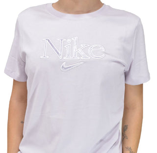 Camiseta Nike Feminina com Logo Stretch, Manga Curta e Gola Redonda, Roxa, Tamanho 1X