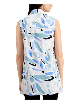 Blusa túnica feminina Alfani com gola abotoada, azul, tamanho pequeno grande