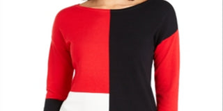 Top Alfani Feminino com Ombros Caídos e Bloqueado, Vermelho, Tamanho Pequeno P/M
