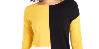 Blusa Alfani Feminina Ombro Caído Colorblock Amarelo Tamanho Pequeno Médio