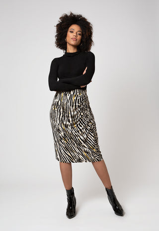 Saia feminina Leota Kathy franzida com estampa de zebra, preta