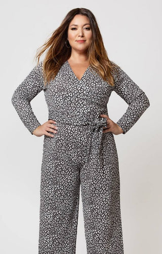 Macacão feminino Leota Kayla com estampa de chita, cinza, tamanho XX-G