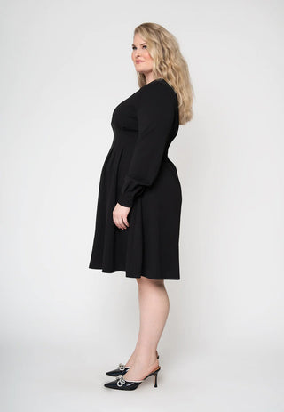 Vestido Lara Feminino Leota em Jacquard Luxe com Linhas Diamante (Curve) Preto