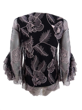 Blusa feminina Alfani bordada com babados, preta, tamanho X-S