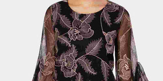 Blusa feminina Alfani com mangas bufantes bordadas, preta, tamanho pequeno grande