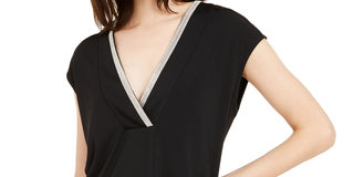 Blusa feminina Alfani com decote em V e detalhes, preta, tamanho grande