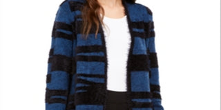 Cardigan longo de malha com cílios feminino Alfani, azul marinho/preto, tamanho pequeno G