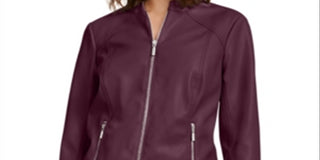 Jaqueta de couro sintético feminina Alfani, tamanho pequeno, vinho