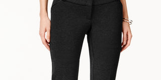 Calça feminina Alfani com acabamento em couro sintético e perna larga, preta, tamanho 8 Petite