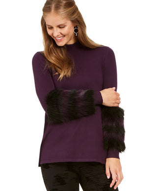 Suéter Alfani Feminino com Acabamento em Pele Sintética Roxo Tamanho Pequeno Pequeno