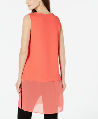 Blusa túnica feminina Alfani coral, sem mangas, com decote redondo, para festa, tamanho pequeno, médio