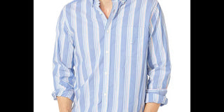 Camisa social masculina listrada Nautica, tamanho médio, azul