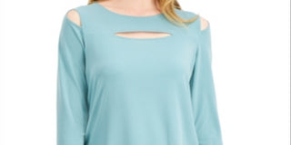 Blusa feminina Alfani com recorte frontal e ombros descobertos, verde, tamanho médio