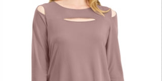 Blusa feminina Alfani com recorte frontal e ombros descobertos, rosa, tamanho pequeno
