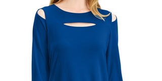 Blusa feminina Alfani com recorte frontal e ombros descobertos, azul, tamanho médio