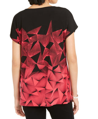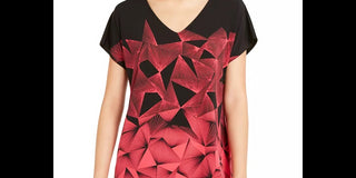 Blusa túnica feminina Alfani com estampa geométrica e decote em V, 2 tons, preta, tamanho extragrande