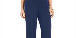 Calça Alfani Feminina Cintura Alta Elástica Perna Reta Azul Tamanho Médio