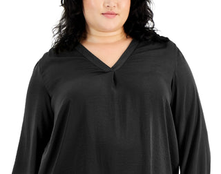 Blusa feminina Alfani com decote em V alto e baixo, preta, tamanho 3X