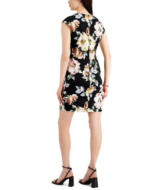 Vestido de crepe feminino com estampa de manga curta e estampa Scuba da Connected, rosa, tamanho 8, pequeno