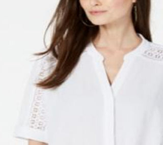 Blusa feminina Alfani com amarração frontal e renda, tamanho pequeno, branca, P