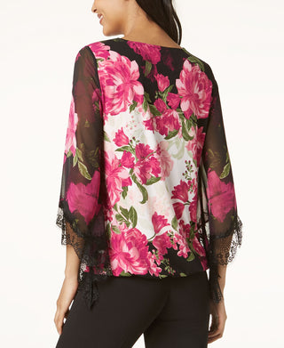Blusa feminina Alfani com acabamento em renda e bainha bolha, rosa, tamanho extragrande