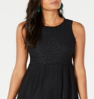 Vestido feminino Alfani de renda sem mangas com decote em joia e bainha MIDI, preto, tamanho 12