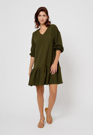 Vestido feminino Leota manga longa verde oliva em marrom avermelhado
