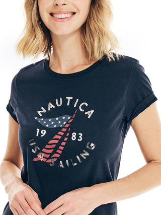 Camiseta feminina Nautica com estampa gráfica, azul, tamanho pequeno